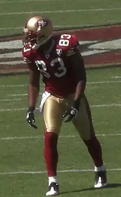 Arnaz Jerome Battle (born February 22, 1980)[1] is an American former professional football player who was a wide receiver in the National Football League (NFL). He played college football for the Notre Dame Fighting Irish and was selected by the San Francisco 49ers in the sixth round of the 2003 NFL draft.[2] Battle also played for the Pittsburgh Steelers. He is the son of former NFL tight end Ron Battle.