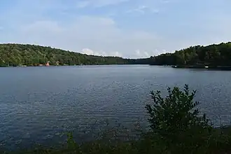 Arnold Lake is a small lake located west-northwest of the Village of Milford in the Town of Hartwick in Otsego County, New York. The lake drains south via Spring Brook which flows into Goodyear Lake by Portlandville.