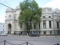 The Arseny Morozov House is a historic building located at 16 Vozdvizhenka Street, Moscow. It was designed by Viktor Mazyrin for his friend Arseny Morozov. The pair had toured around Portugal and been impressed by the Pena Palace in Sintra. An eclectic building with Neo-Manueline architecture, the Morozov House was constructed on the land presented to Arseny by his mother Varvara.[1] Mazyrin built the house between 1895 and 1899.[2]