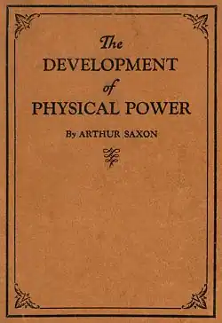 In 1905, Saxon published The Development of Physical Power, which explains his methods for performing lifts including the usage of barbells, dumbbells, and kettlebells, as well as Ring, Ball and Square lifting. This book also depicts Saxon displaying the lifts in 45 pages of photographs.