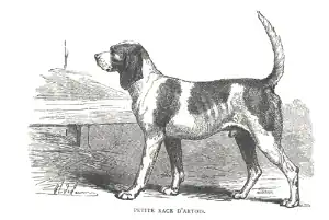 During the 19th century, the Artois Hound was increasingly crossbred with British breeds.[5] Le Couteulx de Canteleu, in the 1890 Manuel de Vénerie Française, writes that it was difficult to find a purebred Artois, but the breed remained one of the best breeds for hare hunting.[1] In the 1880s, Ernest Levair in Picardy had attempted the re-establishment of the old Artois type.[5] Another prominent breeder contemporary to Levair, Mallard, also bred Artois, but his dogs were much less similar to the historical descriptions of the breed.[1] For all their efforts however the Second World War was very damaging for the breed and after the Second World War, the Artois was all but extinct.[5]