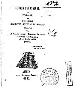 - Noctes Pelasgicae vel Symbolae ad cognoscendas dialectos Graeciae Pelasgicas collatae / Cura Dr. Caroli Heinrici Theodori Reinhold; in *.pdf format
