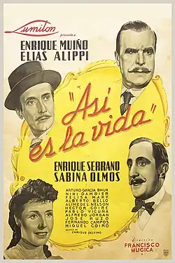 Such Is Life (Spanish: Así es la vida) is a 1939 Argentine melodrama film directed by Francisco Múgica and starring Enrique Muiño, Elías Alippi, Enrique Serrano and Sabina Olmos. It is one of the most celebrated films of the Golden Age of Argentine cinema. Based on a successful play of the same title by Nicolás de las Llanderas and Arnaldo Malfatti, it focuses on the history of a bourgeois family from Buenos Aires from the beginning of the 20th century to the present.[1] A Mexican remake Orange Blossom for Your Wedding was released in 1950.[1]