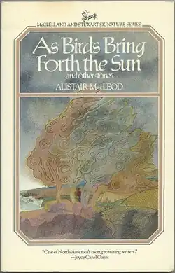 As Birds Bring Forth the Sun and Other Stories is a collection of short stories by Canadian author Alistair MacLeod set predominantly in Cape Breton Island, Nova Scotia and in Newfoundland. It was originally published in 1986. All of its stories were later republished in Island. Macleod explores how family stories and myths, even though they are fictitious, fold into the present to provide comfort in times of emotional distress. The narrator retells the family history of an ancestor who saves and nurtures back to health an injured puppy on the brink of death, only to be violently killed by the dog's offspring a few years later. The dog, known in the stories as the "grey dog of death", consistently appears at times (in dreams or in visions) in the family's history as an omen of imminent death for a relative. The narrator is reminded of the story as he and his siblings sit in a Toronto hospital at the bedside of their ill father. While none of them mention the story to each other, it is clear to the narrator they are all thinking about it, thinking about how even its mention may signal the death of their father.