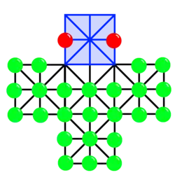 When playing German Tactics, the rebel pieces may not move along any horizontal lines except those at the top of the arms of the cross. Officers and Sepoys uses a larger board and has 50 rebel pieces and three officers.[1]