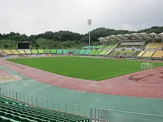 Asan is home of Asan Woori Bank Woori Won, a women's basketball team competing in the Women's Korean Basketball League. In 2016, the club was relocated from Chuncheon to Asan.[6] K League 2 football club Asan Mugunghwa FC was based in the city from 2017 to 2019 before disbanding after the 2019 season. After the disbandment of Asan Mugunghwa, Chungnam Asan FC became the city's professional football club and plays in the K League 2.