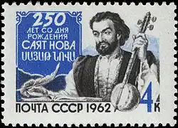 Soviet stamp from 1962 devoted to Armenian ashug Sayat-Nova's 250 anniversary.