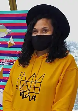 Ashley Nora is an American multi-media artist born in Laurel, Mississippi. She is primarily known for her murals surrounding the Indianapolis area including the Black Lives Matter mural and her "Keepers of Culture" mural, both of which are on the historic Indiana Avenue. Nora is the CEO of her Indiana-based company, Ashely Nora Art LLC, and is acting vice president of the Eighteen Art Collective. Nora art focuses on Black joy and following one's dreams.[1]