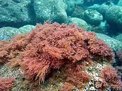 {{cite journal}}: CS1 maint: multiple names: authors list (link) - ^ Navarro-Barranco, C., Florido, M., Ros, M., González-Romero, P., and Guerra-García, J.M (2018). "Impoverished mobile epifaunal assemblages associated with the invasive macroalga Asparagopsis taxiformis in the Mediterranean Sea". Marine Environmental Research. 141: 44–52. Bibcode:2018MarER.141...44N. doi:10.1016/j.marenvres.2018.07.016. PMID 30093236. S2CID 51952493 – via Elsevier Science Direct.