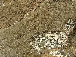 Aspicilia phaea (dusky sunken disk lichen) is a grayish brown to tan areolate crustose lichen commonly found on rock in coastal to inland parts of central and southern California. Described as new to science in 2007,[1]: 227 [2] it is endemic to (only found in) California.[3] It grows on exposed or partially shaded siliceous rock, with a few known occurrences on serpentine rock.[2]