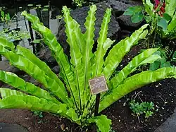 Asplenium antiquum is a species of fern in the family Aspleniaceae.[1][2] It is sometimes referred to by the common names bird's-nest ferns (also called spleenworts). In Japanese, it is known by ō-tani-watari and tani-watari.[3] It grows on cliffs, logs and rocks, near waterfalls, in damp forests, and on tree trunks in China, Japan, Korea, and Taiwan.[4] It is classified as an endangered species in both South Korea[5] and Japan.[4]
