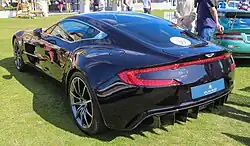 The Aston Martin One-77 is a two-door, two-seater flagship sports car built by the British car manufacturer Aston Martin. The car was first shown at the 2008 Paris Motor Show, although it remained mostly covered by a "Savile Row tailored skirt" throughout the show.[2] It was revealed in full at the 2009 Geneva Motor Show, and deliveries began in 2011.[3]