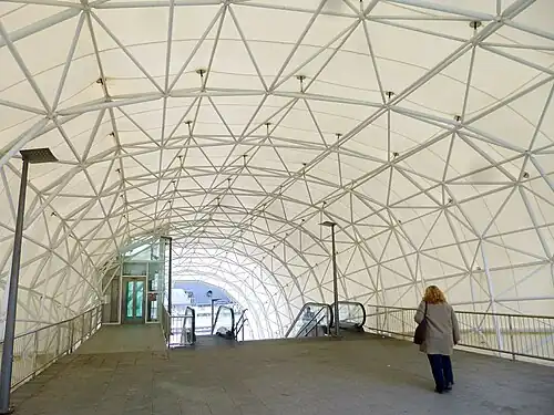 Starting in 1947, the narrow-gauge railway companies that operated within the Bilbao metropolitan area were merged to become Ferrocarriles y Transportes Suburbanos, shortened FTS and the first precedent of today's Bilbao metro. In 1977, the FTS network was transferred to the public company FEVE and in 1982 to the recently created Basque Railways.[4] In the 1980s it was decided the station, just like most of the former railway line, would be integrated into line 1 of the metro. The new station opened as part of the metro network on 11 November 1995.[5]