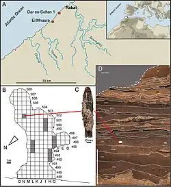 - ^ Barton, R. N. E.; Bouzouggar, A.; Collcutt, S. N.; Schwenninger, J. -L.; Clark-Balzan, L. (2009-09-01). "OSL dating of the Aterian levels at Dar es-Soltan I (Rabat, Morocco) and implications for the dispersal of modern Homo sapiens". Quaternary Science Reviews. 28 (19–20): 1914–1931. Bibcode:2009QSRv...28.1914B. doi:10.1016/j.quascirev.2009.03.010.