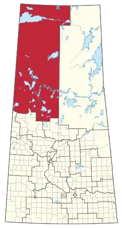 Census subdivision(s)Beauval, Buffalo Narrows, Buffalo River Dene Nation 193, Canoe Lake 165, Chicken 224, Chicken 225, Clearwater River Dene 222, Clearwater River Dene Band 223, Cole Bay, Division No. 18, Unorganized, Dore Lake, Fond du Lac 227, Green Lake, Île-à-la-Crosse, Jans Bay, La Loche, La Plonge 192, Michel Village, Patuanak, Pinehouse, St. George's Hill, Stony Rapids, Turnor Lake, Wapachewunak 192D
