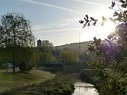 The town is surrounded by two boundaries: the one with France and the other one with Luxembourg. Athus lies at the confluence of the rivers Messancy and Chiers.[1] Directly across the border with Luxembourg is the town of Rodange and the town of Pétange is 1.5 kilometres (0.93 mi) to the east. On the French side, the main neighbouring city is Longwy in Meurthe-et-Moselle, over 5 km to the south west.