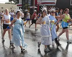 The AJC Peachtree Road Race has become an event important in Atlanta culture. In addition to the 60,000 participants, there are approximately 150,000 observers who line both sides of the entire course to cheer and support the runners.[5] Some runners deliberately wear costumes, many of which are patriotic (due to the event's occurring on Independence Day). The entire race is also televised on WXIA-TV.[1]