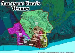 ![]() Location of Atlantic City in Atlantic County highlighted in red (left). Inset map: Location of Atlantic County in New Jersey highlighted in orange (right). | |
