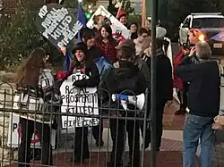 Plans for the pipeline led to protests from landowners in its path, largely in Virginia.[20] An anti-pipeline group, "All Pain No Gain," raised money to run radio and television advertising in opposition of the pipeline, and dozens of landowners attempted to block surveyors from their property, though the pipeline's developers filed lawsuits against them,[20] and Virginia law permits surveying on private property, as well as the use of eminent domain in construction.[8] Local community groups, including Nelson County, VA-based Friends of Wintergreen, a not-for-profit group representing the largest residential and recreational communities in Virginia, retained national pipeline engineers and environmental specialists to demonstrate the technical infeasibility and inappropriateness of the project in western Virginia. Environmental groups, including the Sierra Club, Southern Environmental Law Center (a Charlottesville, Virginia-based non-profit), and Appalachian Voices, also expressed opposition.[9] After the issuance of the draft EIS, a Sierra Club official said that the developers had not proven the demand for the gas transported by the pipeline, as well as criticizing the EIS for not addressing the risks of building a pipeline through unstable karst terrain prone to sinkholes and landslides.[9] An official at Dominion Energy, said that the pipeline route had been adjusted 300 times, for a total of 250 miles (400 km) of rerouting, since its original draft in order to accommodate "environmentally sensitive areas" and other concerns.[9] Exaggerated claims of job creation were challenged by student reporters in West Virginia.[21]