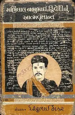 - ^ The original manuscript does not have any title. Its custodian Anandshankar Dhruv wrote the title Manilal Nabhubhaino Atmavrittanta (English: Manilal Nabhubhai's Autobiography) on the opening page of the ledger in which the pages the original manuscript was pasted for preservation. When Dhirubhai Thaker edited and published the first edition, it was published with the title Manilal Nabhubhai Dwivedinu Atmavrittanta (English: Manilal Nabhubhai Dwivedi's Autobiography). It is commonly referred as Atmavrittanta (English: Autobiography, lit. 'Story of Life').[1]