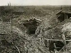 I Battalion, RGR 77 took part in the defence of Pozières from 7 to 21 July, II Battalion, RGR 77 was stationed at Bazentin and Martinpuich from 8 to 23 July and the III Battalion held ground around Pozières, Martinpuich and Bazentin from 14 to 23 July. RGR 15 fought at Feste Schwaben (Schwaben Redoubt), Thiepval, Ovillers and Pozières from 8 to 22 July.[47] RIR 91 was ordered to the Somme on 10 July and two companies took part in an abortive counter-attack from Bazentin Wood on 12 July, suffering many casualties.[48] In August, I Battalion, RGR 15 fought at Martinpuich, the II Battalion at Thiepval-Süd and the rest of the 2nd Guard Reserve Division spent periods on the Somme until the end of the battle. RGR 15 returned to Gommecourt and occupied the defences from 1 September 1916 to 23 February 1917.[47]