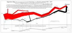 Attrition warfare represents an attempt to grind down an opponent's ability to make war by destroying their military resources by any means possible, including scorched earth, people's war, guerrilla warfare and all kind of battles apart from a decisive battle.[1] Elements of this kind of warfare had already been used in the Peninsular war. The Russian attrition warfare against Napoleon began on 24 June 1812 when Napoleon's Grande Armée crossed the Neman River into Russia and ended on 14 December 1812 with the total defeat of the Grande Armée. A visual representation is given by the drawing of Charles Joseph Minard. The Trachenberg Plan was used in the Sixth Coalition in Germany 1813 and in France 1814. The Seventh Coalition defeated him at Waterloo in 1815 and exiled him to Saint Helena, where he died six years later.