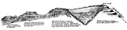 The isthmus is formed from sections of Early Miocene Waitemata Group marine sedimentary rock, with Quaternary volcanic rock from geologically recent volcanic eruptions and lava flows.[3] Approximately 23 million years ago, tectonic forces between the Pacific Plate and Australian Plate pushed the Auckland isthmus and surrounding areas to depths of 2,000-3,000 metres under sea-level. This formed a wide sedimentary basin, sheltered by the large Waitākere Volcano to the west.[4] The Waitemata Group sedimentary rocks were formed by eroding deposits from the Northland Peninsula, then an uplifted island.[4] As tectonic forces changed, the begin was uplifted approximately 17 million years ago.[4]