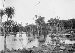 Volcanism has influenced the geography of the isthmus, creating unique forested areas and swamplands. Underneath much of the isthmus are lava caves formed from eruptions such as Maungawhau / Mount Eden (circa 28,000 years ago).[12][11] Known as Ngā Ana Wai to Tāmaki Māori, the caves fed fresh water into springs and swamps around Sandringham and Western Springs.[13] The eruption of Maungarei / Mount Wellington (circa 10,000 years ago)[11] blocked existing creeks on the isthmus and led to the formation of Waiatarua, a former lake and current wetland reserve/golf-course in Remuera/Meadowbank.[14][7] Low-lying swamps were predominantly vegetated with Cordyline australis (cabbage tree / tī kōuka) and Phormium tenax (harakeke flax),[10] and also formed behind beach deposits at the mouths of streams[15]
