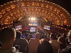 The Auditorium Theatre is a music and performance venue located in the Auditorium Building at 50 E. Ida B. Wells Drive in Chicago, Illinois. Inspired by the Richardsonian Romanesque Style of architect Henry Hobson Richardson, the building was designed by Dankmar Adler and Louis Sullivan and completed in 1889. The Chicago Symphony Orchestra performed in the theatre until 1904 as well as the Chicago Grand Opera Company and its successors the Chicago Opera Association and Chicago Civic Opera until its relocation to the Civic Opera House in 1929. The theater was home to the Joffrey Ballet from 1998 until 2020.[1][2] It currently hosts a variety of concerts, musicals, performances, and events. Since the 1940s, it has been owned by Roosevelt University and since the 1960s it has been refurbished and managed by an independent non-profit arts organization.