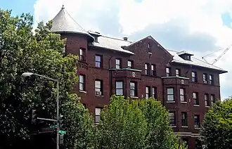 The Augusta Apartment Building, along with the Louisa Apartment Building, are historic structures located in the Northwest Quadrant of Washington, D.C. Washington architect Arthur B. Heaton designed both buildings, which were built a year apart from one another in 1900 and 1901. They are two of his earliest commissions.[2] The Tudor Revival façade of the buildings emulate the mansions that were built during the late Victorian age. The exterior features Flemish bond and tapestry brick with decorative motifs in both tile and limestone.[2] It was listed on the National Register of Historic Places in 1994.