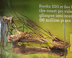 {{cite book}}: CS1 maint: multiple names: authors list (link) - ^ LINDGREN, JOHAN; SCHULP, ANNE S. (September 2010). "New material ofPrognathodon(Squamata: Mosasauridae), and the mosasaur assemblage of the Maastrichtian of California, U.S.A.". Journal of Vertebrate Paleontology. 30 (5): 1632–1636. Bibcode:2010JVPal..30.1632L. doi:10.1080/02724634.2010.501444. ISSN 0272-4634. S2CID 131124198.