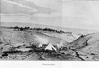 Esadze wrote that in 1860 the Terek region was divided into 6 districts: Kabardian, Military-Ossetian, Chechen, Argun, Ichkerin and Kumyk and into two separate districts: Aukh and Salavat, which were temporarily assigned to the Kumyk district (1907). In Esadze's opinion, all these districts (naibdoms), established or transformed during the period of the most vigorous hostilities from 1857 to 1859, were of a temporary nature.[3]