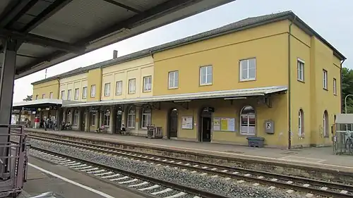 Aulendorf station is a junction station on the Ulm–Friedrichshafen railway in the German state of Baden-Württemberg running between Ulm and Friedrichshafen. It was opened in 1847.