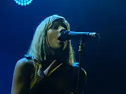 At home, she did not have access to radio or music channels on television; she admitted that she had listened to very few artists at the beginning of her singing career.[159] She has mentioned Ane Brun,[160] Björk,[161] Bob Dylan,[26] Enya,[26] Johnny Cash,[162] Kate Bush,[82] Leonard Cohen,[26] Oasis,[163] Susanne Sundfør,[164] The Beatles,[165] and Underworld[166] as her major influences. She said that the first album she bought was Dylan's Blonde on Blonde.[34] She also talked about heavy metal as a major inspiration for her from a young age, citing French band Gojira as her "favorite band", and she has attended two of their concerts.[167] She first listened to one of their songs when she was around 11 years old and described it as "so hard and so intense and dark, and it felt like an explosion."[168] Aurora has also listened to the bands Mastodon, System of a Down, Tool, Metallica, Refused, and Slayer.[167][168][160] She also stated in a BBC Radio 2 interview that she had a great love for many Scandinavian heavy metal bands as well as David Bowie.[169] Her love for heavy metal inspired her compilation EP For the Metal People, which included some of her songs influenced by the genre.[168] Aurora also expressed her admiration for rock musician Iggy Pop, adding that when she met him during a festival in Belgium, she was "so happy I almost peed my pants."[82] She and the frontman of Nordic folk band Wardruna have shown admiration for each other's work, and performed the song "Helvegen" together several times.[170]