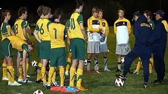 Following the introduction of 7-a-side football in the 1984 Summer Paralympic games, Australia lacked a governing body to oversee and funding to develop a Paralympic football team.[5] In 1998 the Cerebral Palsy Australian Sport & Recreation Federation (CPASRF) and the Australian Paralympic Committee (APC) collectively established a 7-aside football team in preparation for the countries home Sydney 2000 Paralympics.[6] The team managed by Cornelius Van Eldik and coached by both Russell Marriott and David Campbell lost all three games in the group stage of their debut Summer Paralympic campaign.[7]