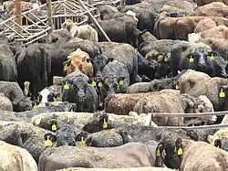 Australia is the world's largest live exporter of animals for slaughter. The trade involved over three million animals in 2011 valued at approximately A$1 billion, of which the majority were cattle and sheep. However, the live export trade only accounts for 0.4% of all Australian exports, as of 2014.[1] Australia exports live cattle, sheep, goats, dairy cows, buffalo, and alpacas.[2]