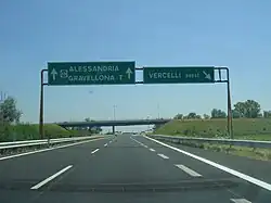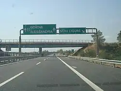 The Autostrada A7/A26 Diramazione Bettole-Predosa (A7/A26) is a 17 km motorway which links the A26 near Predosa with the Autostrada A7 near Bettole (a frazione of Pozzolo Formigaro). The entire autostrada is within the Province of Alessandria. Its sole exit is for Novi Ligure and it provides a convenient means of access to both the A7 and the A26 from that town.[1]