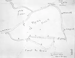 The Airdrome was obtained by the Air Service on 7 March 1918. It consisted of 268 acres of land, with a capacity of four aero squadrons and one-half a Park (Support) squadron. Buildings were constructed in a forested area next to the airfield for camouflage from enemy aircraft; works were performed by two Construction squadron: 477th Aero Squadron 28 March to 12 June, and 482nd Aero Squadron 28 March to early July.[2] On the Airdrome at the time of the November 1918 armistice consisted of 33 barracks and mess hals, two maintenance shops, 6 supply warehouses and a total of twenty-one French "Bessonneau" aircraft hangars. There were a total of eight administration buildings, and a small medical clinic.[1]