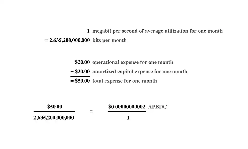 Average Per-Bit Delivery Cost divides the cost of however many bits were actually modulated across a network or component of a network over a period of time by the total operational and amortized capital expenses associated with the network or component over the same time-period, to produce an average cost for the delivery of each transmitted bit of data.[2] This is contrasted principally with flat-rate and 95th percentile functions, which are typically used for billing customers rather than cost accounting. In typical use, APBDCs of individual links or components of an operating network are compared with the APBDC of the whole, in order to evaluate the efficiency of the components and to track improvements in efficiency.[3][4]