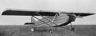 Its high, rectangular plan wing had constant thickness and was mounted without dihedral. It was built around two spars and its riveted skin, made of Schneider-Creusot's patented aluminium-iron alloy Alférium,[2][1] was corrugated in the line of flight for stiffness. Narrow chord ailerons filled the whole trailing edge. The wing was braced on each side with parallel pairs of streamlined struts from the lower fuselage to the wing spars at about mid-span.[2]