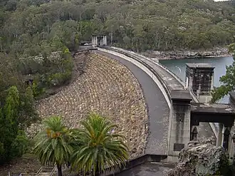 The Avon Dam is a heritage-listed dam at Avon, in the New South Wales Southern Highlands, Australia. It is one of four dams and weirs in the catchment of the Upper Nepean Scheme, providing water to the Macarthur and Illawarra regions, the Wollondilly Shire, and metropolitan Sydney. The arch dam across the Avon River was completed in 1927 under the supervision of Ernest Macartney de Burgh, the dam is currently managed by the Sydney Catchment Authority and is listed on the New South Wales State Heritage Register.[1]
