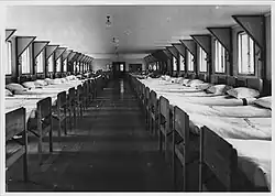 The facility was designed by Tibor Donner[6] (then in the NZ Public Works Department) and built by Fletcher Construction. The Department of Education had some of the site planned for a new secondary school to cope with the overcrowding of Auckland secondary schools. The hospital was given first priority, but a small portion of the buildings were built in permanent materials so that the wards, the gymnasium, the hall and some other buildings could be converted into a school at the end of the war. The extent of the hospital was huge, taking up all of the present school site as well as the nearby Rosebank Park and fields.