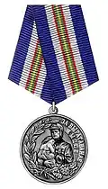 | Medal "In Memory of the 10th Anniversary of Withdrawal of Soviet Forces from Afghanistan." Медаль «В память 10-Летия Вывода Советских Войск Из Афганистана» Medal «V 10-Letija Vyvoda Sovetskih Vojsk Iz Afganistana» | February 5, 1999 | ||