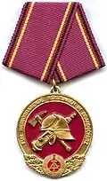 ![]() | Medal for excellent performance in the fighting groups of the working class (Medaille für ausgezeichnete Leistungen in den Kampfgruppen der Arbeiterklasse) | 6th October 1965 | The medal was awarded in a single class for special merit in the deployment, development and consolidation of combat groups, for excellent performance in leadership and training, for the care and maintenance of equipment and armament. | |