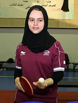 Aya Mohamed Majdi (born 1 August 1994)[1] is an Egyptian born Qatari table tennis player. Trained by the Chinese coach Su Li,[2] Aya won three gold medals – singles, doubles and team – at the 2010 GCC Championship in Doha.[3]