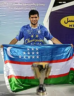 ![]() Azizbek Celebrate with Esteghlal their IPL 2021-22 Title Win with Farhad Majidi | |||