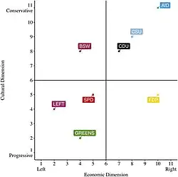 - ^ Franzmann, Simon T.; Kasten, Nadine; Hensel, Alexander (2024). "(K)ein Lückenfüller? Zu Profil und Programm der neuen Partei Bündnis Sahra Wagenknecht (BSW)". Demokratie-Dialog (in German). 14 (1): 22. doi:10.17875/gup2024-2629.