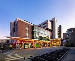 In 2003, a $28 million expansion saw the opening of a new Ambulatory Care Building, for the increasing numbers of patients not needing to stay overnight.[6] The building tripled the number of clinic rooms available on site for patients and staff, and houses 24 pediatric specialty medical and surgical clinics.[6] The architects state that the building "is nearly 40% more efficient than the National Energy Code called for when it was built. Sustainable design features include orientation toward solar exposure, maximization of natural ventilation and natural daylight, concourse ventilation, insulated north walls, reduction in electrical power consumption through daylighting, task lighting, and light and occupancy sensors."[7] The project also involved the nearby B.C. Women's Hospital & Health Centre's new Maternity and Ambulatory Program Clinics, Child and Adolescent Psychiatry, and the Emergency renovation and expansion.[7]