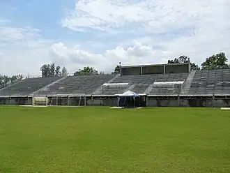 The stadium has just one stand. It is unroofed and unseated. There is a grass bank behind the goal to the left of the stand and training pitches behind the other goal. Opposite the stand is a tree-lined grass bank. A perimeter fence separates spectators from the pitch. Unusually for a Thai stadium there is no athletics track. There are no floodlights either.
