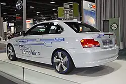 The BMW ActiveE was a demonstration electric car based on the BMW 1 Series small family cars. It was the second vehicle after the Mini E to be developed under BMW Group’s Project i. The electric drive system was the latest addition to BMW’s EfficientDynamics programme.[2] The US Environmental Protection Agency official range is 151 kilometres (94 mi), with an energy consumption of 33 kW·h/100 miles, and the agency rated the ActiveE's combined fuel economy at 2.3L/100 km (102 miles per gallon gasoline equivalent).[1]